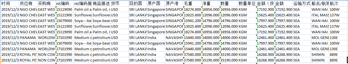 三、斯里兰卡海关数据(斯里兰卡海关进口数据)样本: